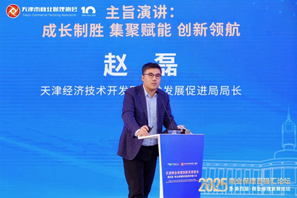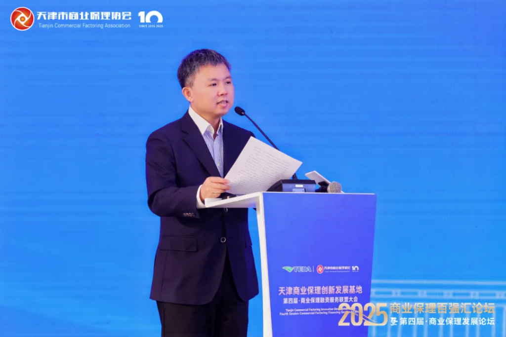经开区产融发展促进局局长赵磊以“成长制胜 集聚赋能 创新领航”为主题,详细介绍了天津商业保理创新发展基地的建设成果与未来规划。他表示,经过五年深耕,基地已构建起集政策支持、资源整合、风险防控于一体的产业生态体系,集聚了一批优质商业保理企业,业务规模稳步增长、创新成果持续涌现。下一步,基地将聚焦保理企业发展核心需求,重点推动数字化转型、跨境业务拓展、合规体系完善等十项高质量发展举措落地,致力打造全国领先的商业保理创新高地。
