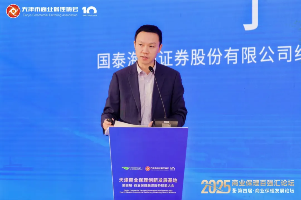 此次大会特邀国泰海通证券股份有限公司结构金融部联席行政负责人丁琎先生发表了主旨演讲《商业保理公司资产证券化——入池标准及创新方向》