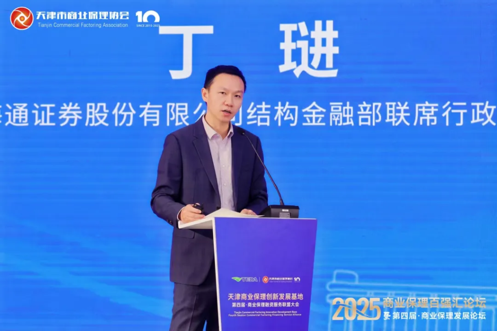 丁琎:尊敬的各位领导、各位来宾,感谢天津市商业保理协会的邀请,有幸参加本次商业保理融资服务联盟大会。我来自国泰海通证券,所在部门是结构金融部。自部门成立以来,我们的主要业务是开展各个市场、各种类型的资产证券化。