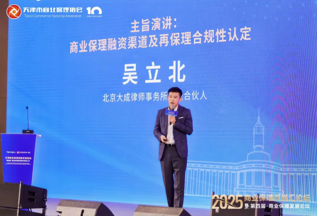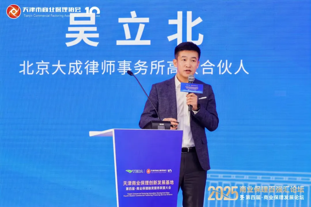 此次大会特邀北京大成律师事务所高级合伙人吴立北先生表了主旨演讲《商业保理融资渠道及再保理合规性认定》