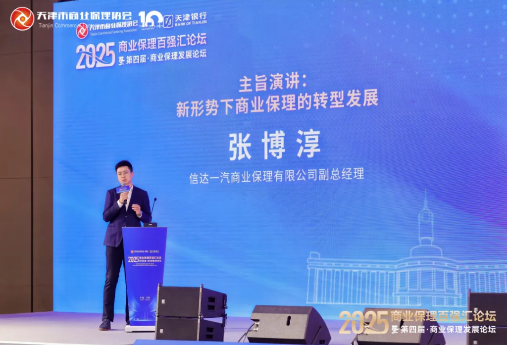此次大会特邀信达一汽商业保理有限公司副总经理张博淳先生表了主旨演讲《新形势下商业保理的转型发展》